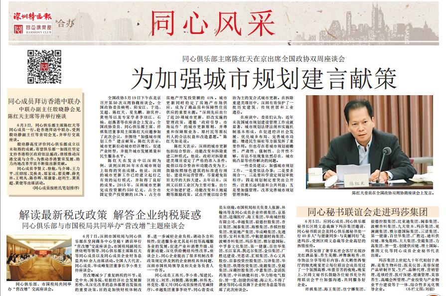6月9日《深圳特区报》A4版:同心俱乐部主席陈红天在京出席全国政协双周座谈会 为加强城市规